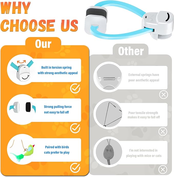 - Cat Doorway Toy Complete Set –Cat toys for doorway ready to Play Right Out of the Box Includes: ✅ 1x Flying bird Toy for Cats(attracts cats with realistic motion) ✅ 2x Elastic Strings (adjustable length for different play styles) ✅ 1x USB Charging Cable (convenient rechargeable) ✅ 1x Color Box + User Manual (easy setup)Enrichment for indoor cats perfect for keeping cats entertained automatic cat toy doorway.