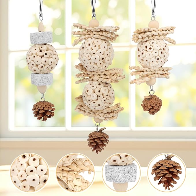 - Our parrot chew toys are enough to keep your pet relaxed and playing for hours, come with hooks and fit perfectly in the cage
