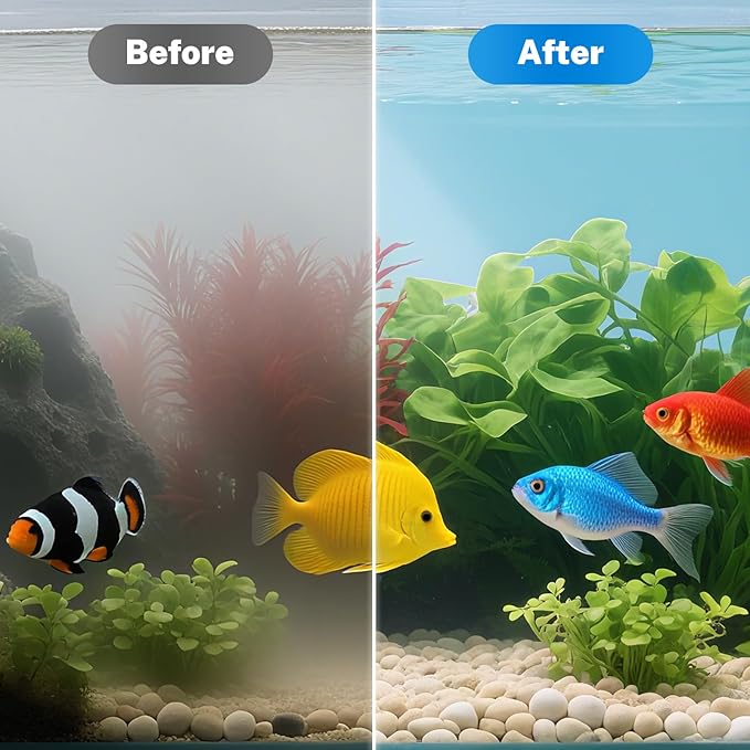 - Smart Tips : It is recommended to replace the filter element every 2-4 weeks to maintain the best filtration effect and provide a healthy and fresh living environment for your fish (adjust based on tank size, fish load, or algae growth).