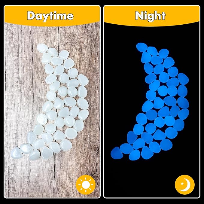 - Various Uses: These glowing pebbles are ideal as fish tank rocks, aquarium gravel, fairy garden decorations, betta fish tank accessories, turtle tank accessories, outdoor rock decor for yards, walkways, as well as for filling vases, flowerpots, and plant gardens, making your home and yard incredibly beautiful.
