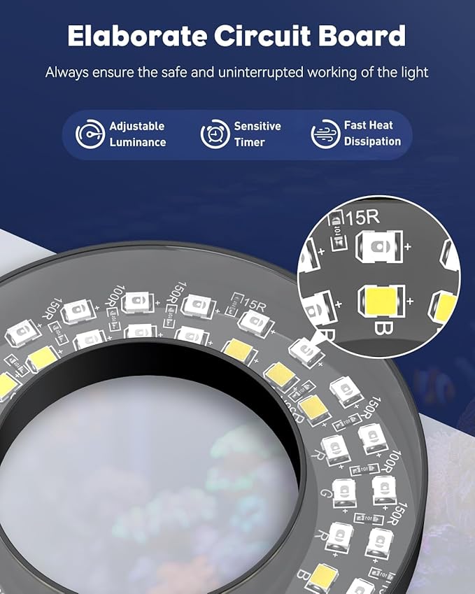 - 2 Lighting Modes: Press “M” repeatedly on the saltwater aquarium light to switch between day and night modes. Hold “M” for 3 seconds to turn all lights off. Effortlessly highlight the natural beauty of your tank inhabitants with perfect lighting control