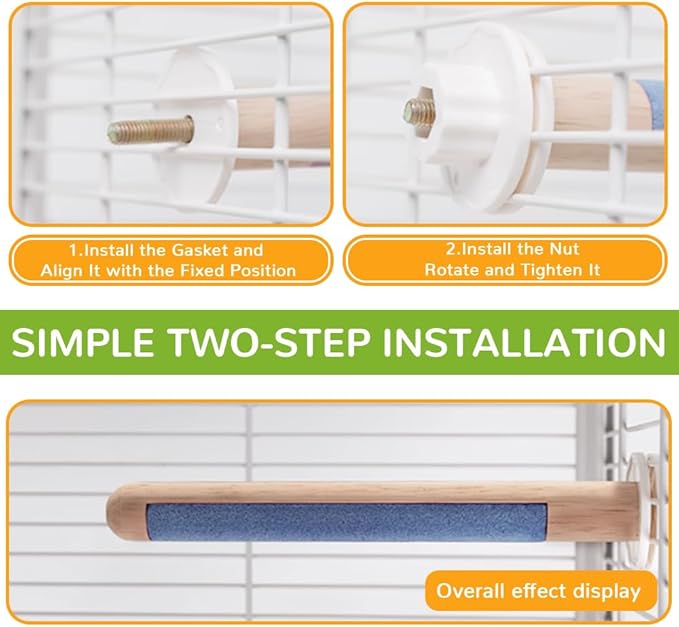 - 【EASY TO INSTALL IN SECONDS】Designed for universal compatibility, this perch easily attaches to most bird cages with the included metal screws. No tools required—simply twist to secure and adjust the desired angle for your feathered friend.