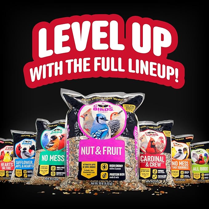 - Attracts more of the Coolest Birds to Your Feeder – Cardinals, grosbeaks, woodpeckers, and chickadees can't resist this nutty, fruity party mix