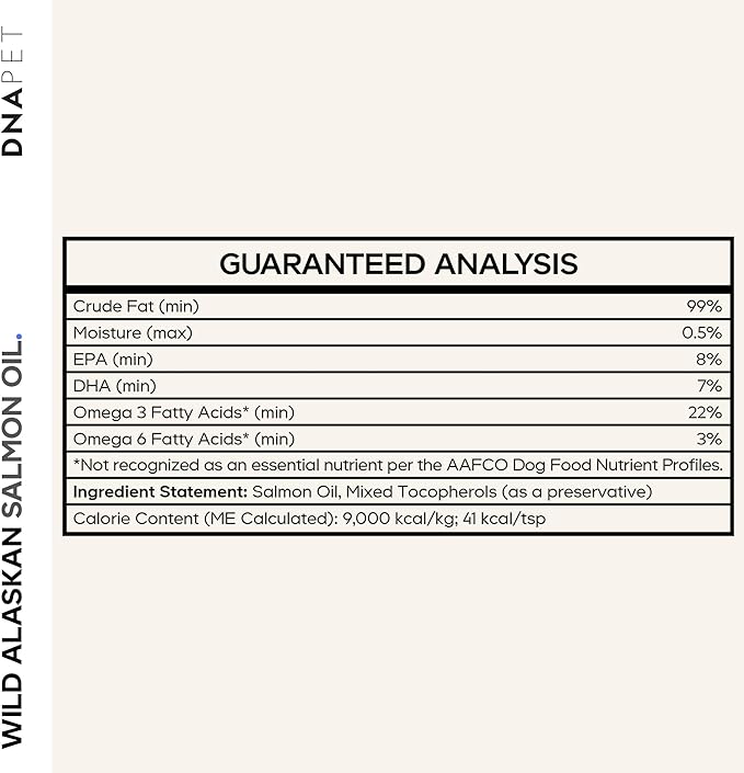 - Clean Ingredients: DNA PET Wild Alaskan Salmon Oil is formulated with salmon oil and mixed tocopherols for additional purity. This clean salmon oil for dogs formula is free from artificial additives and unnecessary binders.