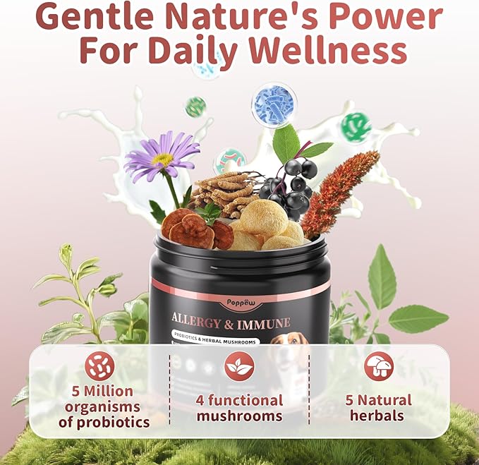 - Nature's Immune Trifecta: Boost your dog's overall immune health with our probiotics supplement featuring ganoderma lucidum, turkey tail mushroom, and echinacea for overall immune support through multiple pathways