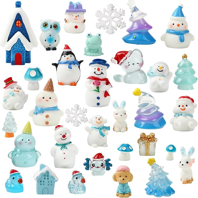 - Creative Winter Gifts : Mini winter figurines set contains 34 diverse designs, from cute winter animals to dreamy ice and snow houses, each winter fairy garden accessories is unique. Whether as a holiday gift, or for handicraft and home decoration, mini resin winter figurines can meet your diverse needs and provide more inspiration for your creativity