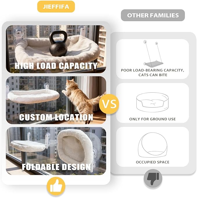 - Ultra-Secure Suction Cups, Tested & Trusted: Features upgraded suction cups that underwent a rigorous 168-hour heavy load test with zero position shift. Confidently holds up to 55 lbs, providing a safe and stable lounging space for your medium and small cats