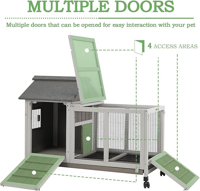 - 【All-Weather Protection】Brave the elements with confidence! Our rabbit hutch features a rugged asphalt roof that stands strong under rain, snow, or blazing sun—so your furry friend stays protected and cozy in their very own bunny house.