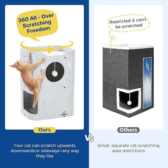 - 360° All - OVER SCRATCHING FREEDOM:Crafted with premium felt.There are no dead corners on the cat house, so cats can scratch from any angle and any direction, releasing their scratching instinct and saying goodbye to the trouble of scratching furniture